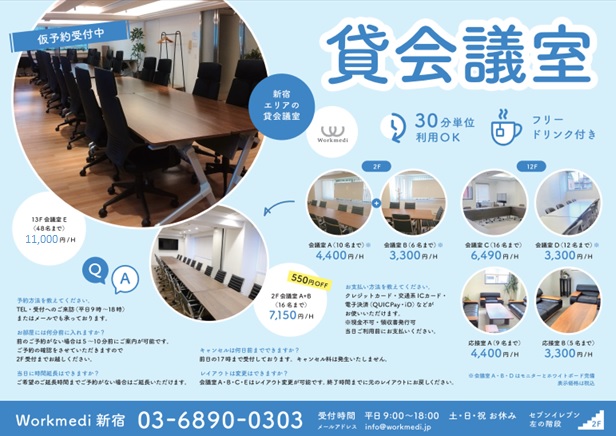 口コミでコワーキングスペースを選ぶなら、ワークメディ。フリーデスク、レンタルオフィス、シェアオフィスを
